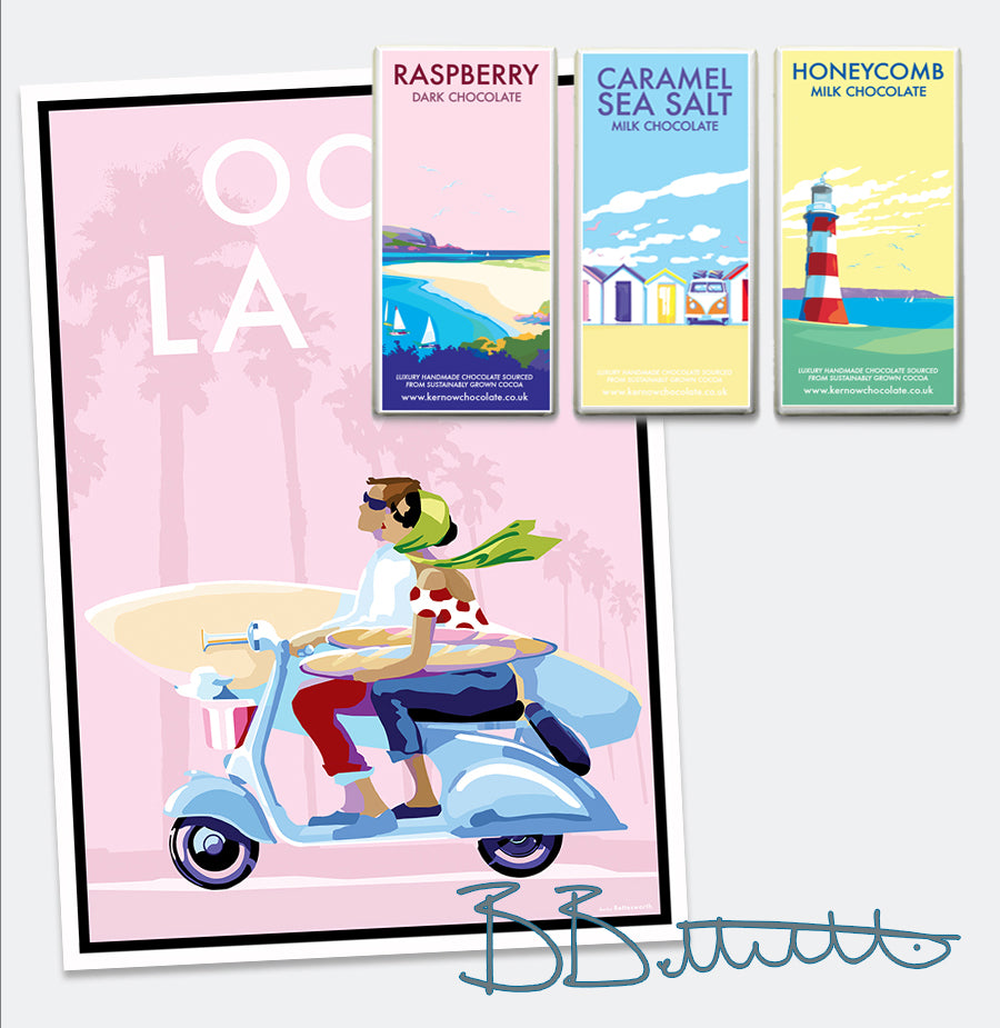 Becky's work draws inspiration from the classic railway posters of the 1930s. Her vintage seaside posters are modern and fresh, showing a place off at its best, without the fuss and rush of the modern world.
