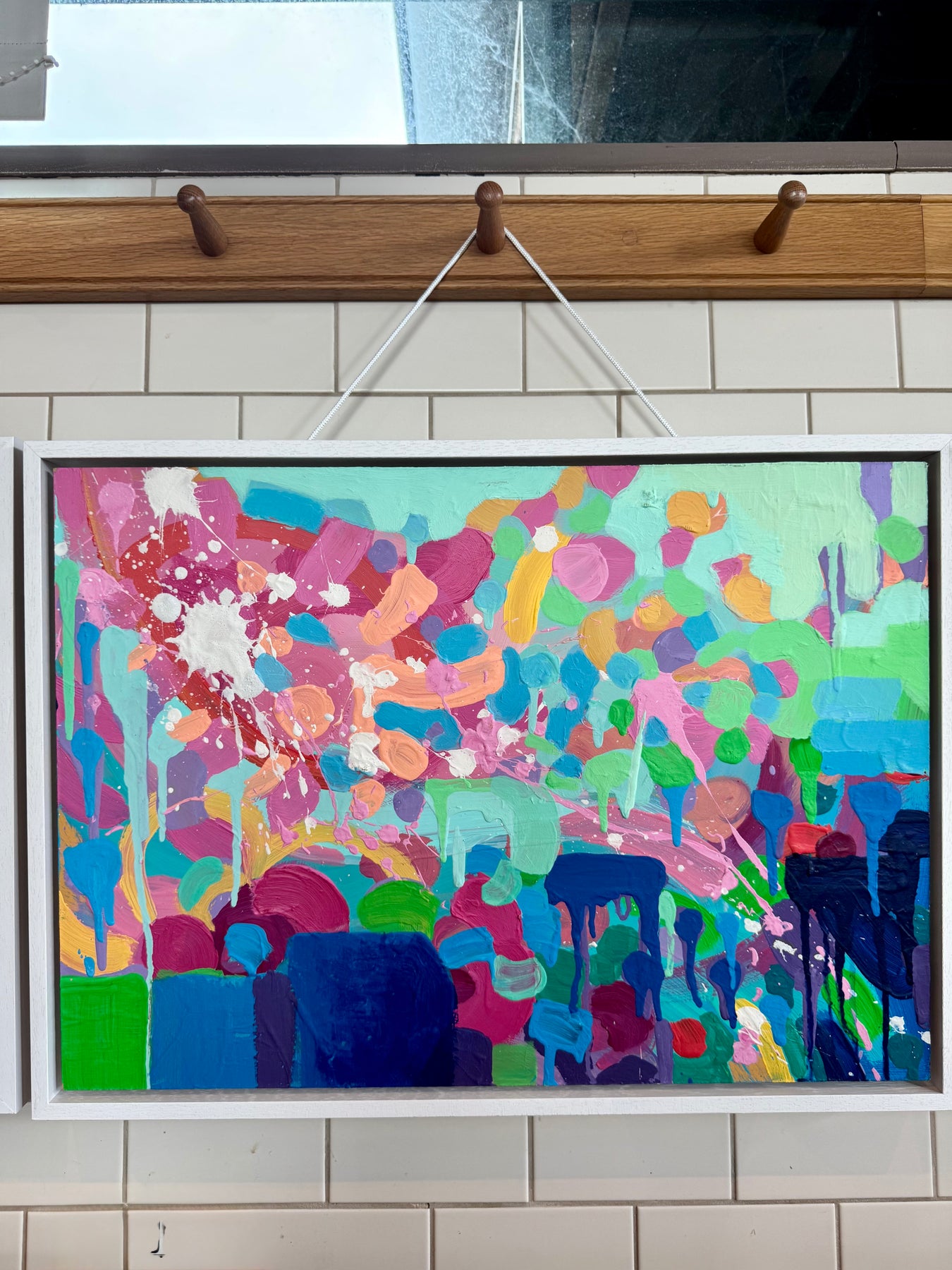 June - A vibrant celebration of summer energy and colour, June bursts with life through layers of expressive brushstrokes and joyful splashes of paint. The composition is alive with turquoise, magenta, lime, and coral tones that capture the warmth and light of long, sun-filled days. Drips and splatters of acrylic add a sense of movement and spontaneity, reflecting the carefree spirit of the season. Radiant and uplifting, June embodies creativity, sunshine, and the joy of living colourfully.
