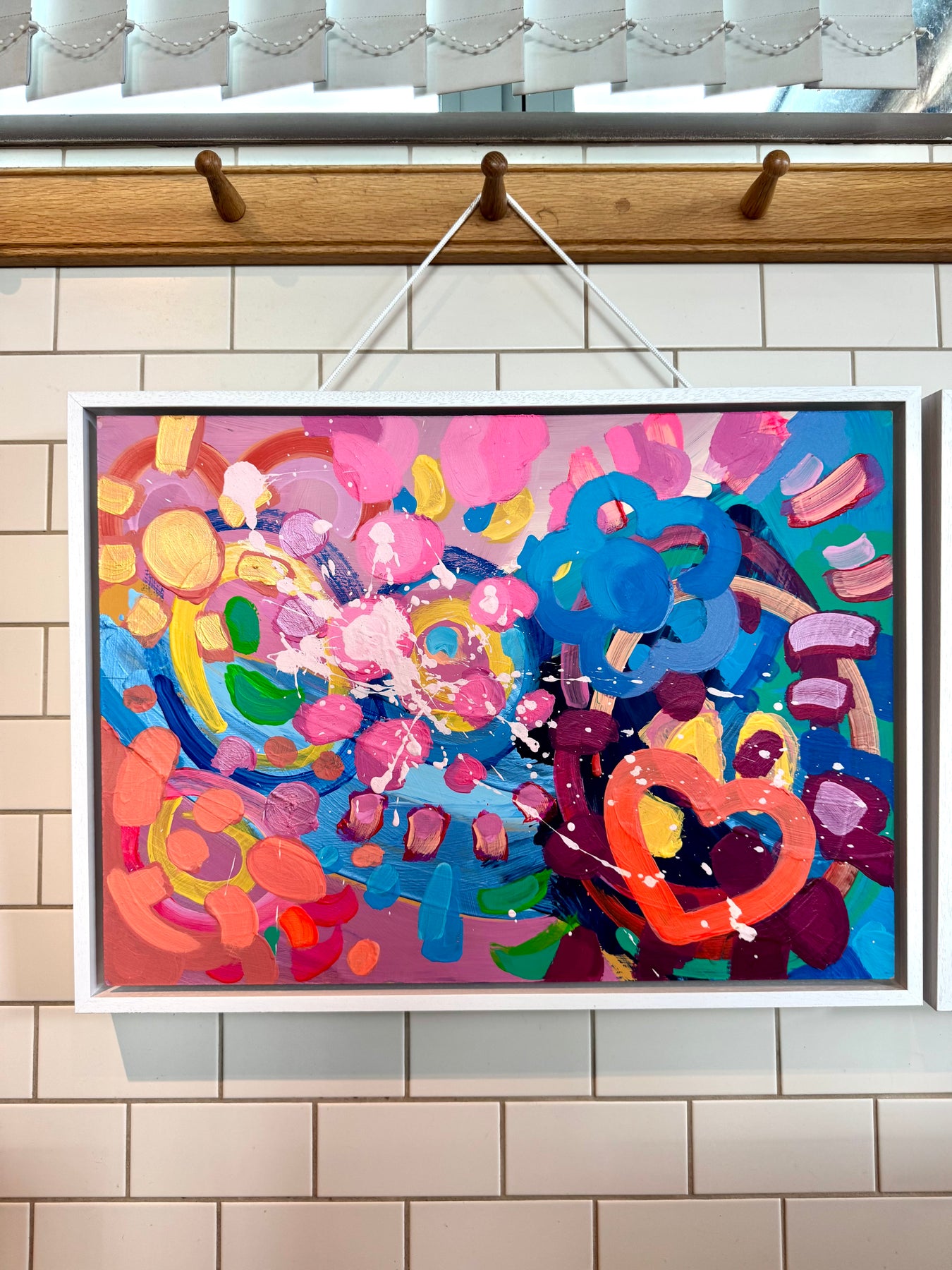 May - A joyful explosion of colour and energy, May captures the essence of springtime renewal and happiness. Layers of vivid pinks, oranges, blues, and yellows dance across the canvas in bold, expressive strokes, celebrating warmth, light, and positivity. The playful heart motif and splashes of paint bring movement and spontaneity, reflecting the fresh, carefree spirit of the season. Painted in acrylic, this piece radiates optimism and creativity — a celebration of life in full bloom.