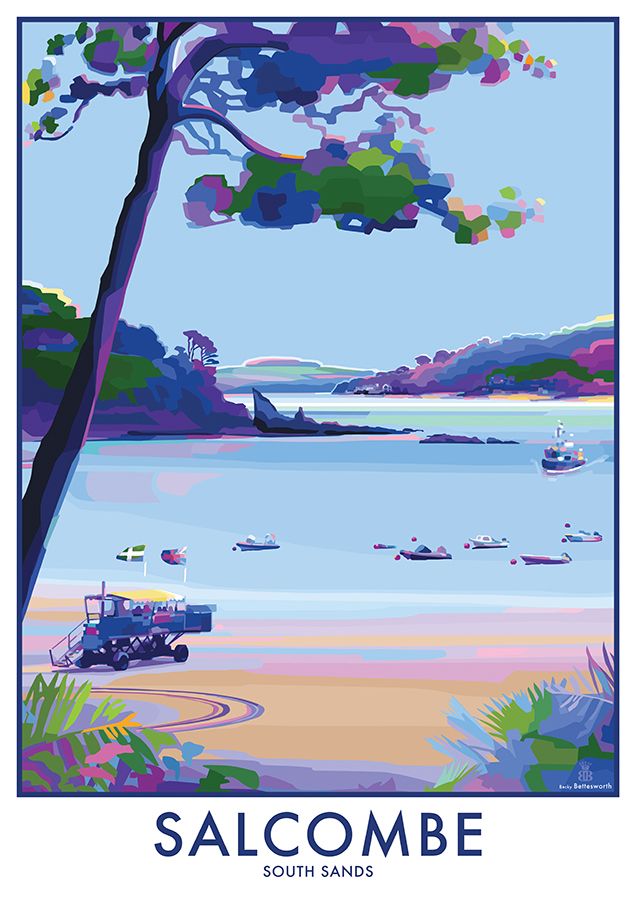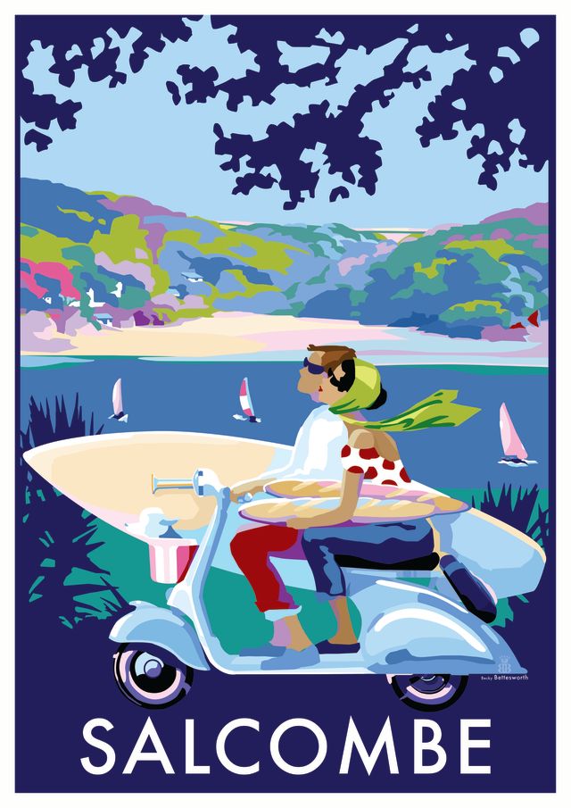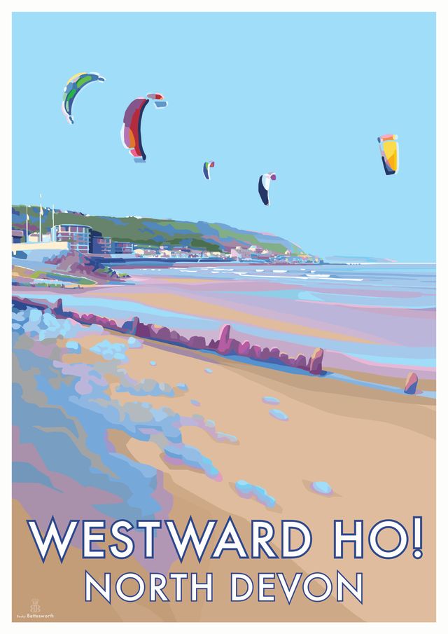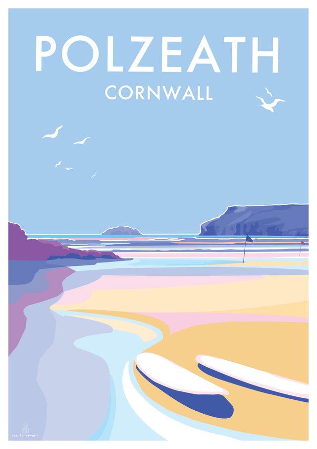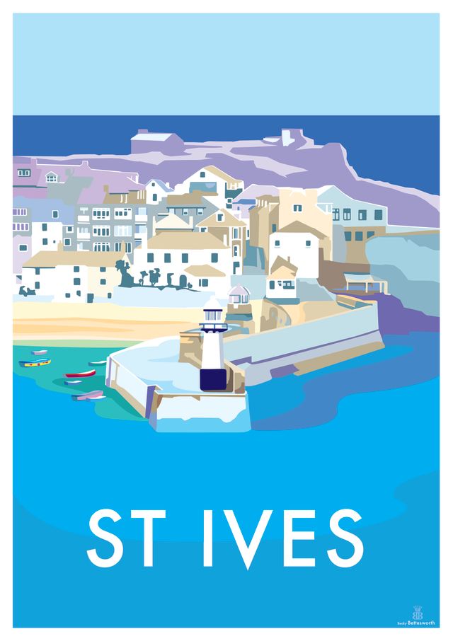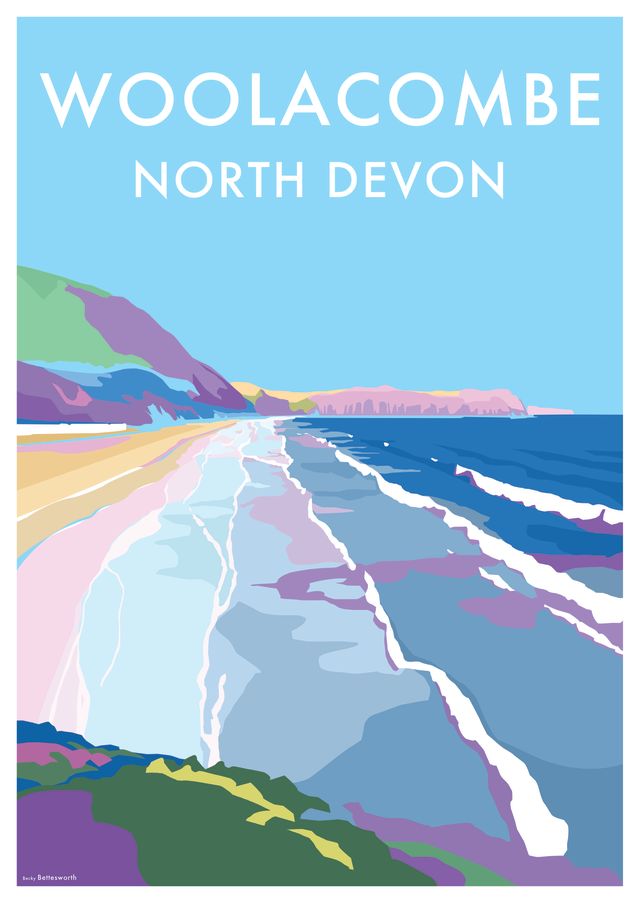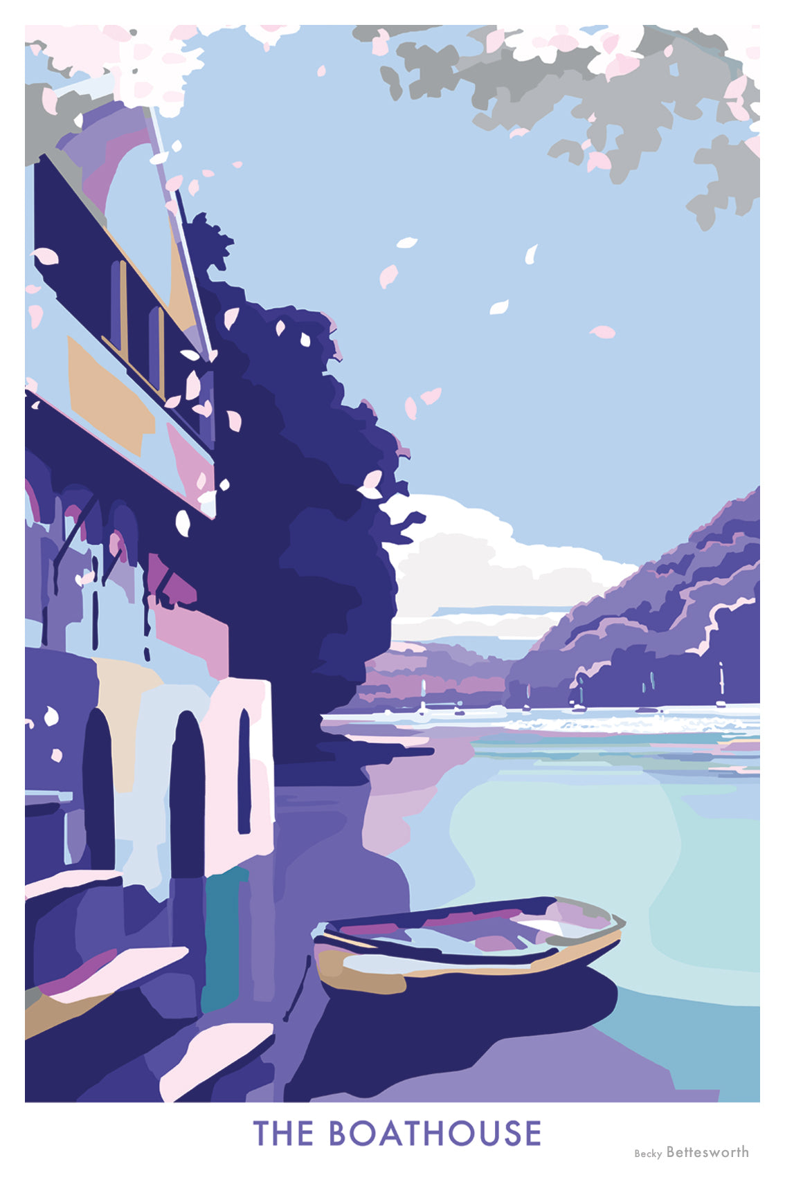 Becky's work draws inspiration from the classic railway posters of the 1930s. Her vintage seaside posters are modern and fresh, showing a place off at its best, without the fuss and rush of the modern world.