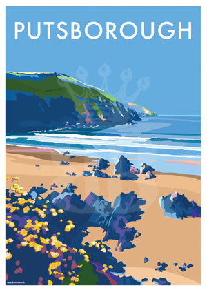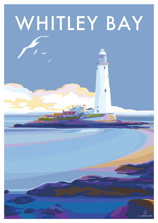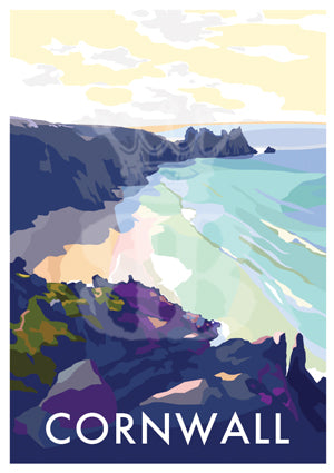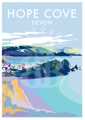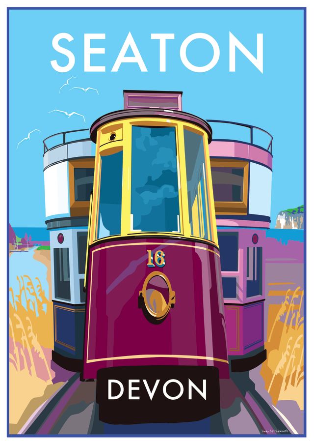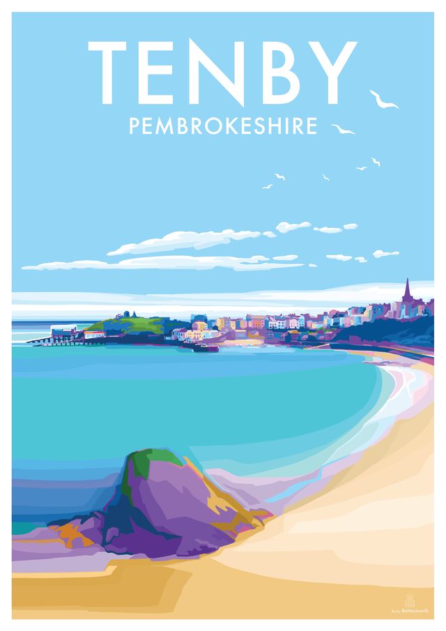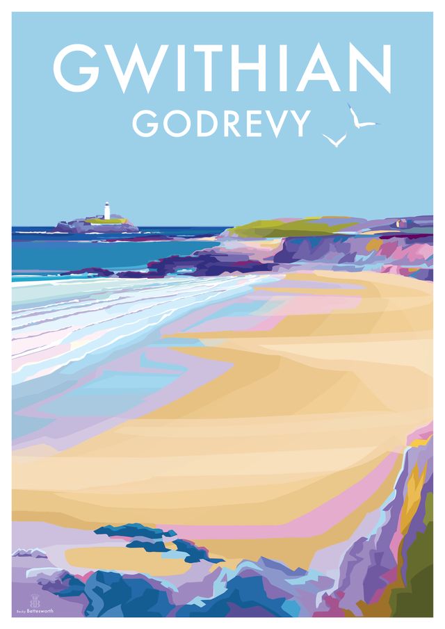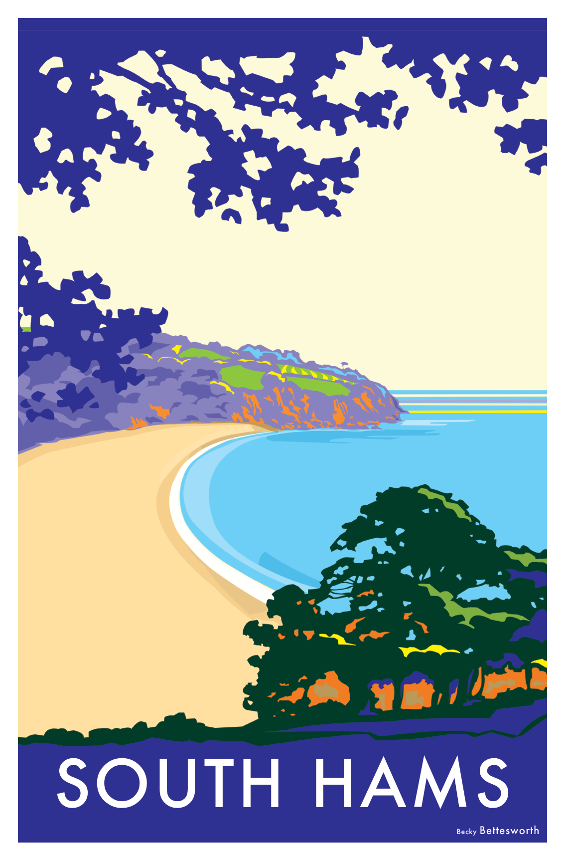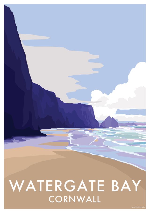 Becky's work draws inspiration from the classic railway posters of the 1930s. Her vintage seaside posters are modern and fresh, showing a place off at its best, without the fuss and rush of the modern world.